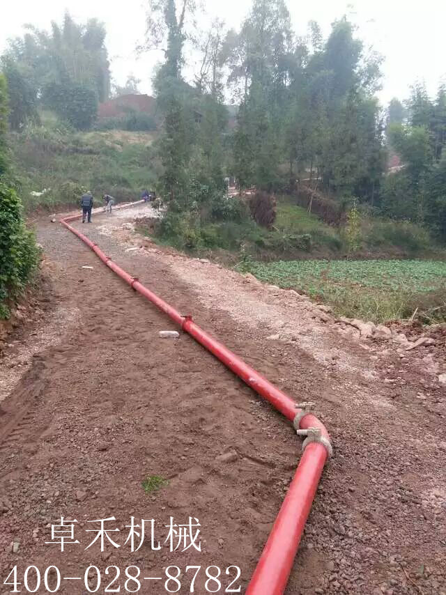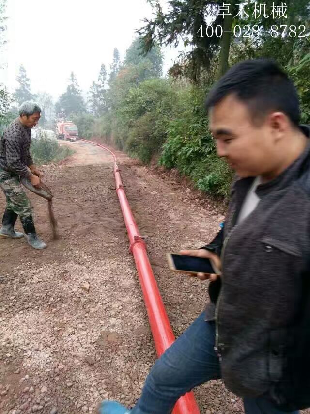 车载强制搅拌泵修建乡村公路一次泵送300米远。